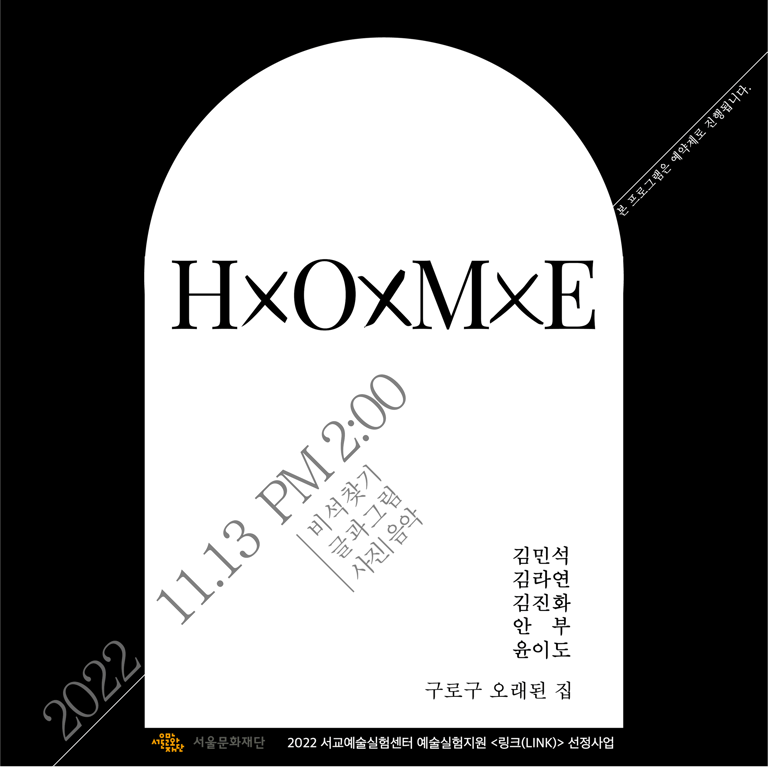 'XXX' is comprised of individuals with expertise and opinions in various fields such as visual arts, architecture, landscaping, music, and literature. Formed with the aim of constructing a sculptural language that can be experimented with artistically while also engaging in discussions with members of society, 'XXX' has initiated the project 'HxOxMxE' on the theme of "old houses" through the 'LINK' project. Alongside this, they intend to present field tour programs titled "[The old house decided to greet the night eventually]" and "[Six holes, two triangles, skwer corridors]." 'HxOxMxE' is based on research into the 'old houses' of Seoul that are soon to be erased within the contemporary economic and social logic. 'XXX' seeks to unfold diverse narratives about residential areas through the process of grasping the narratives condensed in the long-term living spaces of the late Mr. No (84) and Ms. Lee (90), understanding the grounds of life they have carried out for over 50 years, and reinterpreting their intimate histories from various perspectives. Furthermore, they plan to continuously attempt to discuss the societal sensibilities inherent in this private space with the audience.